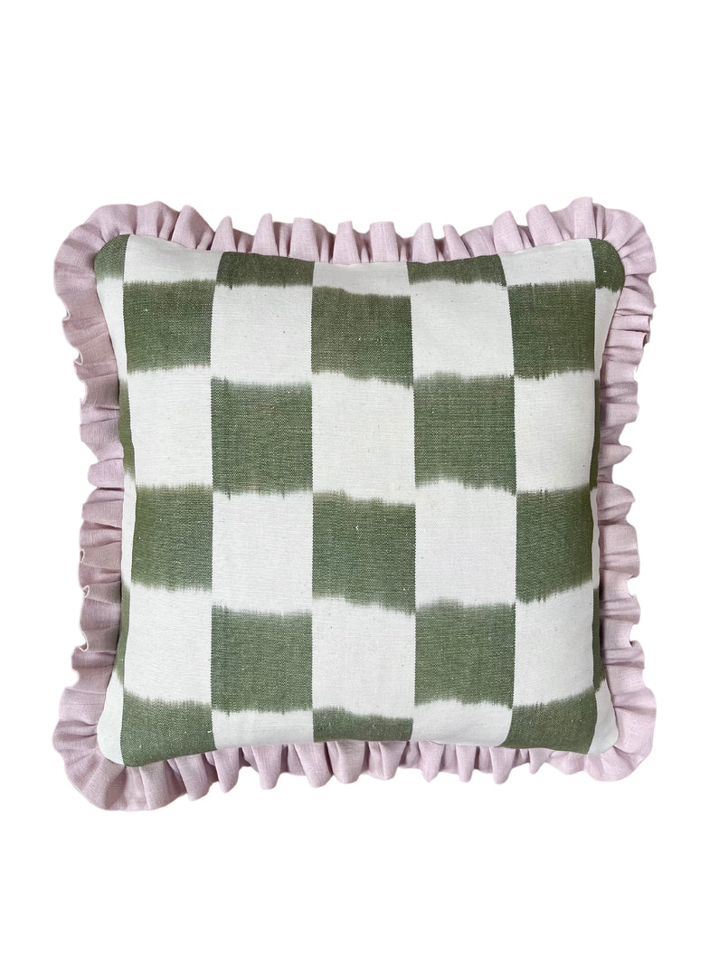 Green Checkerboard + Pale Pink Frill