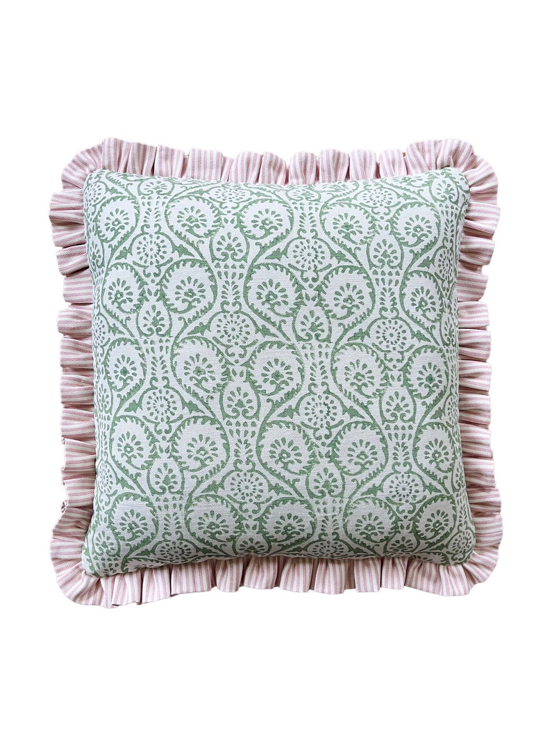 Green Ashok Block Print + Pink Stripe Frill