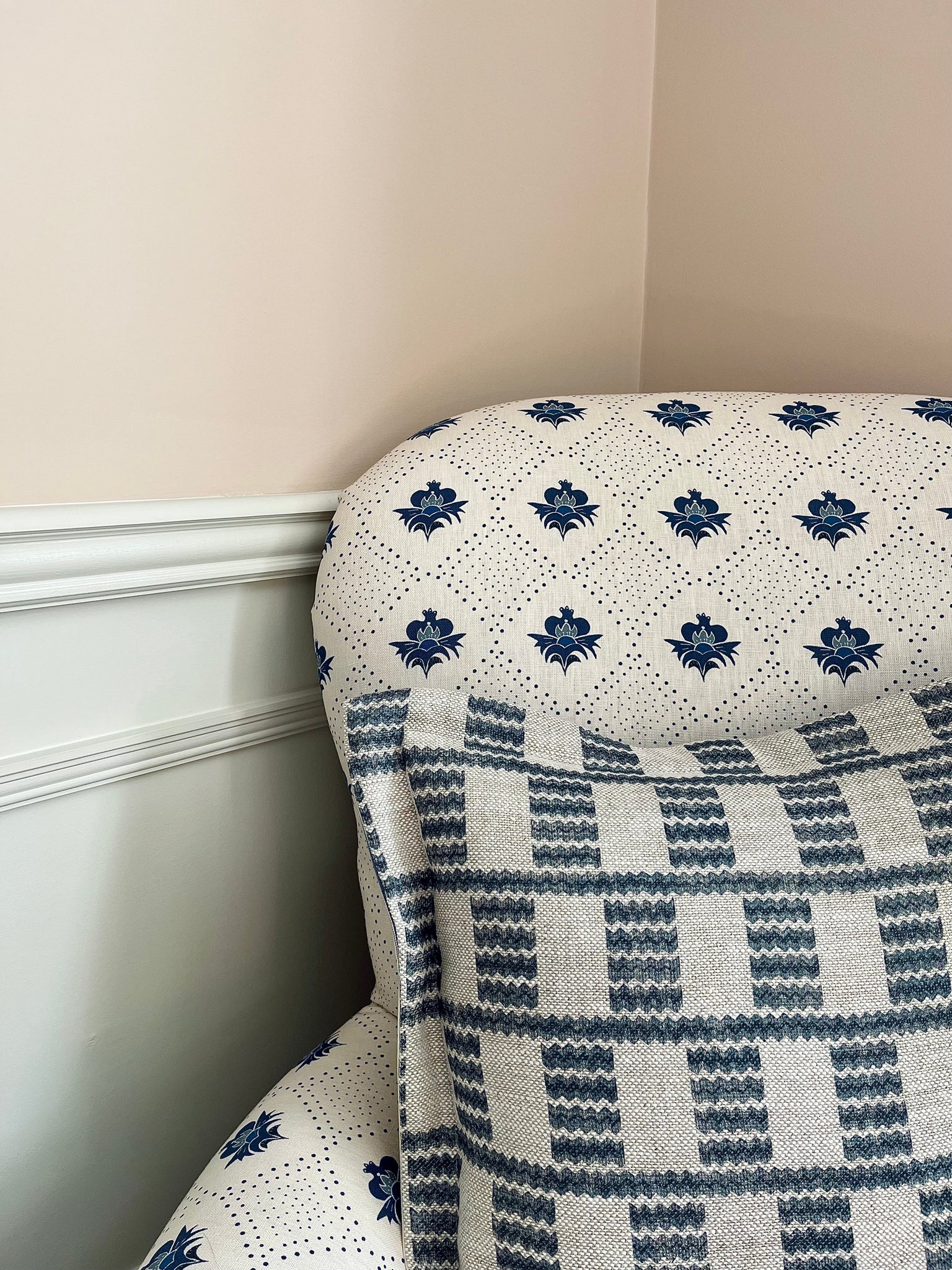 One of my absolute favourites, paired with an Oxford border and navy ticking back - just so classic.